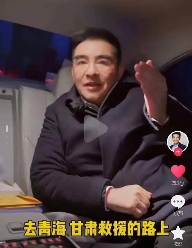在他的抖音视频中,陈光标坐在一辆车上对网友们介绍,自己正在“去青海、甘肃救援的路上”。