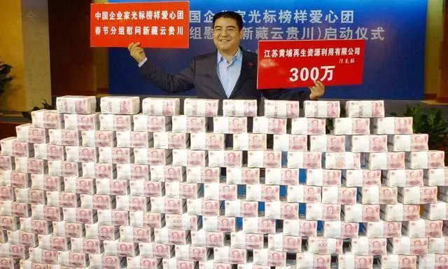 他的第一笔捐款是他上学时帮助同学,第二笔捐款是28万。那年,陈光标在南京新街口摆地摊卖诊疗仪,一共赚了60万。他拿出28万给家乡村子修了一条路。