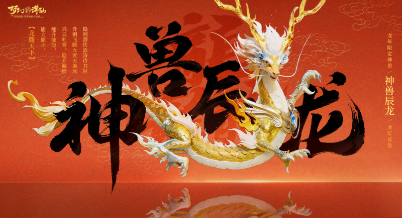 《梦幻新诛仙》是一款取材自中国传统仙侠题材的游戏,游戏中的画面、剧情,以及角色的塑造都贴近了中国传统文化的核心价值观,存在于千年中华文明中的“龙”一直被视为祥瑞的象征,为源远流长的中国历史增添了一抹带有东方幻想的色彩。在甲辰龙年中,《梦幻新诛仙》手游特别推出了「神兽·辰龙」,辰龙为正统的五爪龙形象,其背景故事致敬九龙壁的“楠木替玉”故事,且有定制非遗京绣加持文化属性。在全新生肖神兽的爆料期间便已赚足了眼球,其与爱好传统中式国风的玩家审美不谋而合,成为了最受期待的新年神兽。