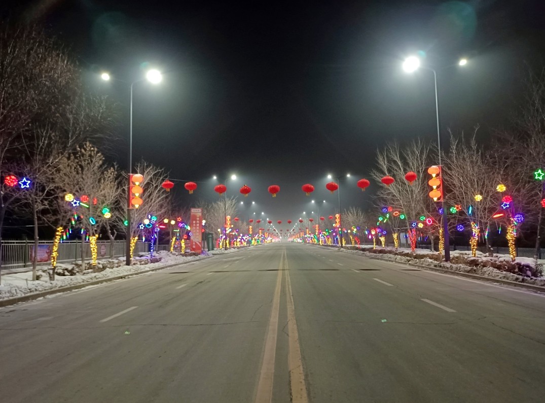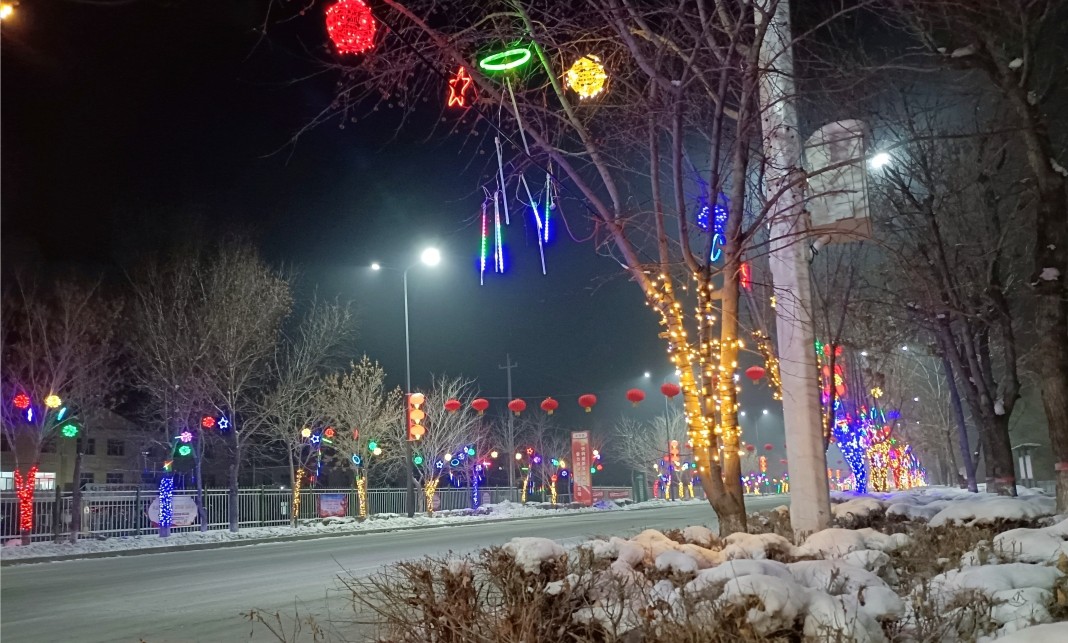 在这靓丽景观的背后,也有一四四团招商引资企业——新疆鹏莱建筑工程有限公司员工的鼎力相助和辛勤付出。为了扮靓团场,让团场职工群众切身感受到浓浓的年味带来的欢乐和喜庆,该公司自愿出资30余万元购买了各类了彩灯,组织员工在该团钟兴路、光明路等路段安装了流星雨、满天星等串灯,营造出“火树银花扮靓镇区,流光溢彩喜迎新春”的热闹氛围,增强团场广大职工群众的获得感和幸福感,让职工群众度过一个欢乐祥和、敞亮喜庆的新春佳节。