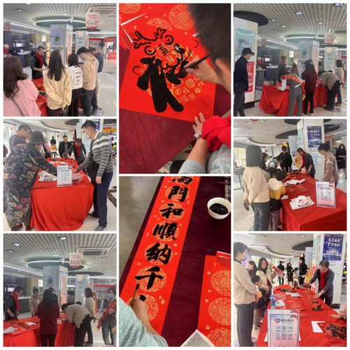活动当天邀请了营业厅周边社区的老年人及户外劳动者等人群参与,现场呈现出一派欢乐祥和的氛围,书法家将美好的祝福融入笔墨之中,结合生肖龙的形象书写创意福字及一幅幅年味十足、寄托新春祝福的春联。书法家行云流水般书写春联的精湛技艺,吸引了众多参与者的驻足观赏,感受中国书法的魅力。