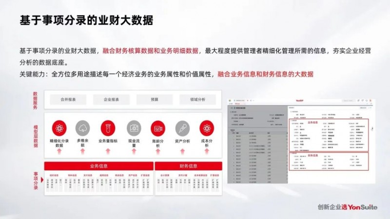 当前,企业面临的数据挑战日益增加,尤其是数据的分散问题,成为了阻碍企业进一步发展的关键因素。在这样的背景下,YonSuite推出的事项会计中台+智能分析解决方案,可以帮助企业在复杂且无序的经济业务场景中进行有效的归纳分析。