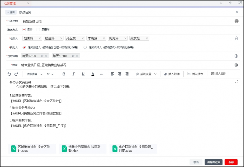 根据数据应用的情况,设置定期任务、预警任务,不仅可以定期为数据应用推送分析内容,同时,当数据出现异常时,还可以进行消息提醒。