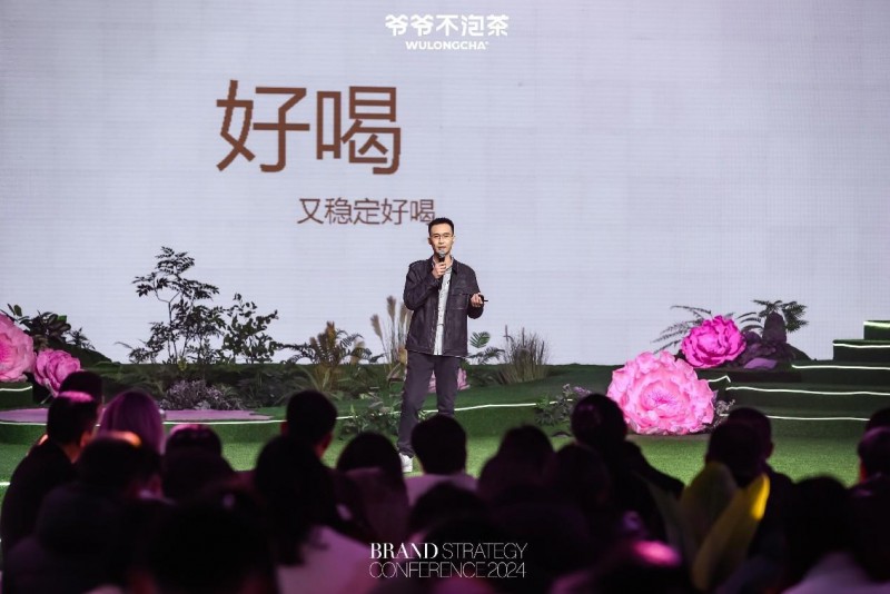 发布会现场,伴随着舞台巨大樱粉色礼盒的徐徐打开,闪耀的樱花与「爷爷不泡茶」的品牌名一起盛开,爷爷不泡茶2024品牌战略发布TVC正式发布。品牌总监张骏、研发总监赵哲、品牌联合创始人于丽娜依次登台,讲述品牌、产品与经营的全新战略。