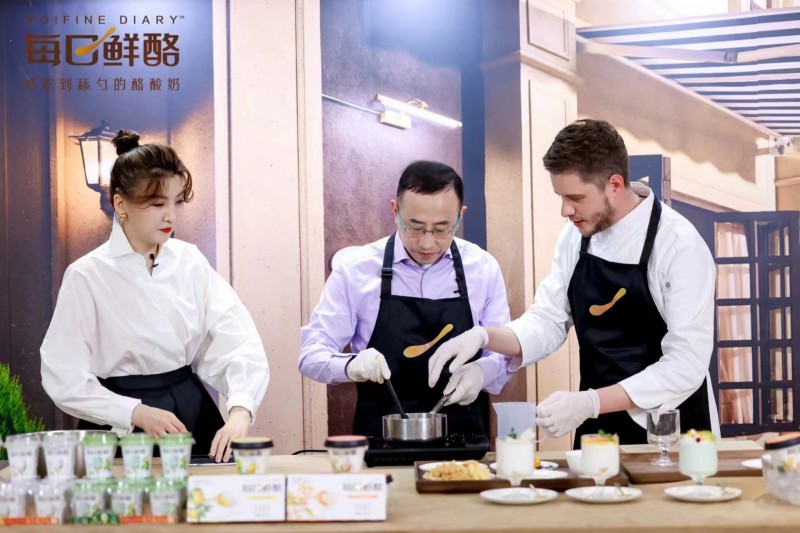 3月15日,《总裁厨房》第二季直播活动在上海前滩中心举行,这场活动是蒙牛集团“315消费者日”系列活动之一。活动中,蒙牛总裁卢敏放走进直播间,携手“每日鲜酪”星级美味品鉴官——米其林法餐经验星厨戴广坦(Corentin Delcroix),以“法式甜品制作+现场对话访谈”的形式,与消费者精彩互动,让观众对蒙牛产品和法式下午茶“磕了一把CP”。