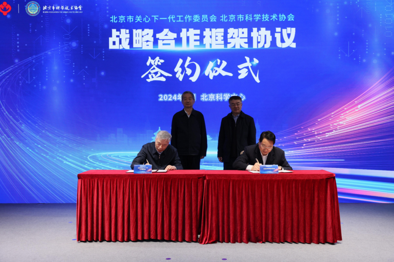 为构建有效联动、密切配合的青少年科学教育协同机制,提升科学教育实施效能,3月23日,北京市关心下一代工作委员会(以下简称“北京市关工委”)、北京市科学技术协会(以下简称“北京市科协”)在北京科学中心举行战略合作框架协议签约仪式。