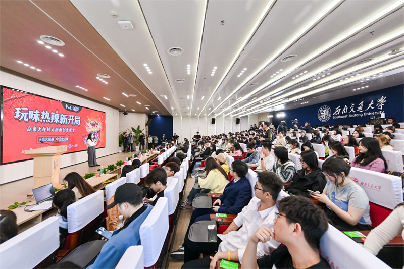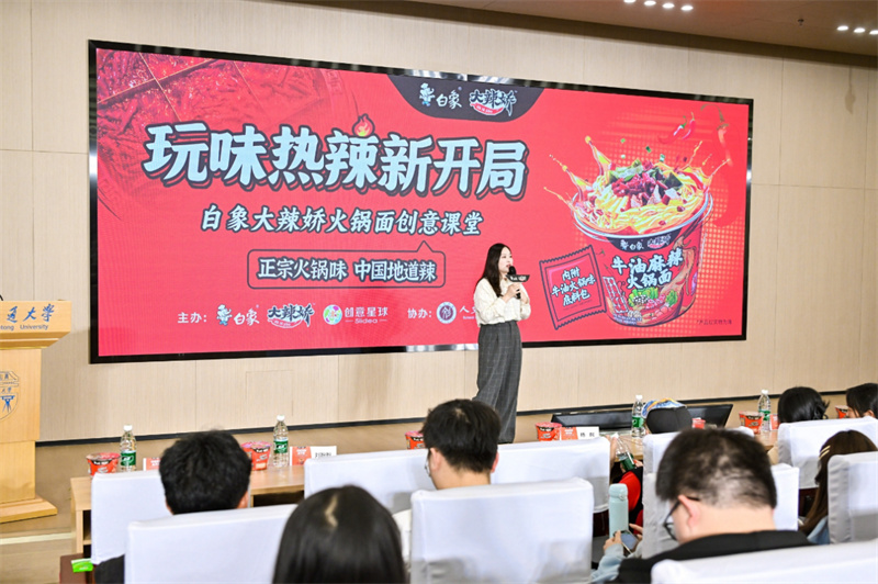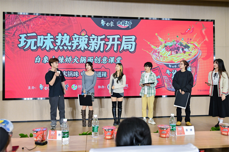 创意为帆,火辣启航。3月25日,白象大辣娇在西南交通大学开展了一堂以“玩味热辣新开局”为主题的白象大辣娇火锅面创意课堂。活动由白象大辣娇与创意星球大讲堂联合打造,深入火锅发源地四川,旨将中国地道辣面的美味和趣味一起带进校园,与200余位学子展开了一场与“火锅味”有关的深度创意碰撞交流。