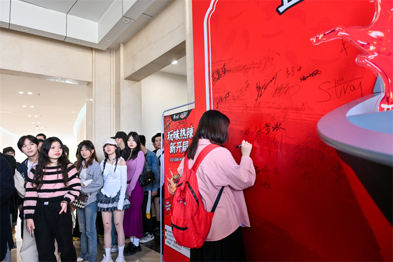 宣讲场内气氛持续升温,场外互动更是热度不减,白象大辣娇风格鲜明的品牌互动体验展区加满活力buff,吸引众多学子驻足并花式打卡留影,在校园之中掀起“热辣风暴”,他们通过社交媒体纷纷晒出对白象大辣娇牛油麻辣火锅面的满分热爱。