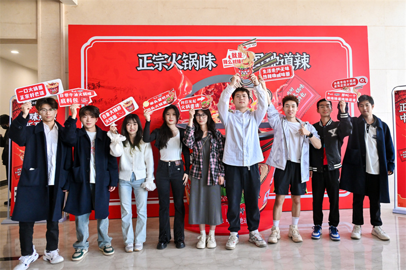 活动最后,白象大辣娇邀请在场所有学子品尝牛油麻辣火锅面,老火锅真牛油的底料包使这堂课充满了“火锅味”,创造了200人“举杯”吃面的现象级画面,白象大辣娇品牌也进一步达成了“深度种草”。