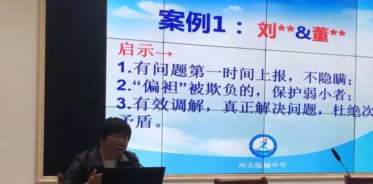 高一年级主任周沉茹以“福流”向大家分享了她的幸福教育之道。她通过对六个案例的深刻剖析,向大家展示了她在管理学生、班级和年级的智慧。她说:“只要心无旁骛、专注地投入教育事业,有梦想,有行动;有学习,有反思;有爱心,有担当;有智慧,有尊重就会成为临城中学这个优秀团队中的幸福教育者。”