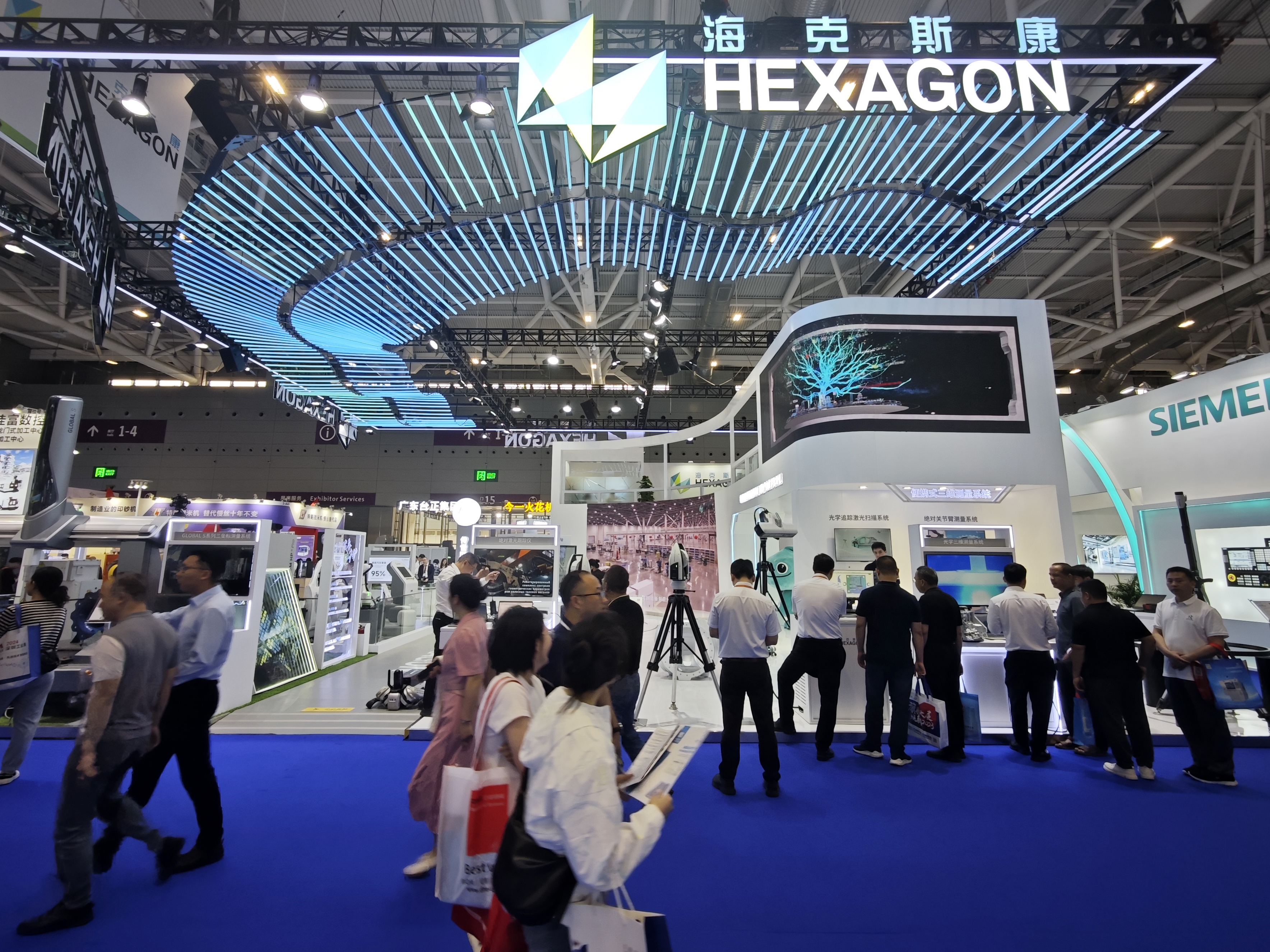 记者注意到,在海克斯康展台,还展陈有诸多“世界之最”。例如:世界上精度最高的测量机徕茨(Leitz),可以0.28微米测量精度,测量头发丝直径的两百多分之一;世界上测量范围最广的激光跟踪仪徕卡(Leica)可对大尺寸测量任务,以高速度、高精度响应。