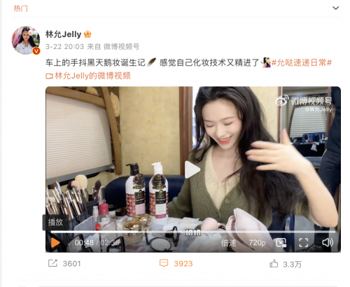 林允2016年在周星驰的电影作品《美人鱼》中饰演女主角,从而正式进入演艺圈,曾出演过《爵迹》《西游伏妖篇》《斗破苍穹》《一吻定情》等知名电影,还曾获得第16届纽约亚洲电影节亚洲新星大奖、第12届中美电影节最佳新人奖、第3届中澳国际电影节最佳新人奖等多个奖项,这么一个当红女艺人的另外一个身份却是“美妆博主”,是美妆圈的带货女王,她的推荐备受粉丝欢迎,这次的#林允头皮健康#微博话题阅读超过一点五亿,也说明头皮健康是网友广受关注的话题。