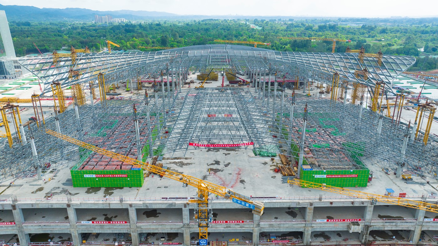 成都天府站高架站房施工现场。受访者供图