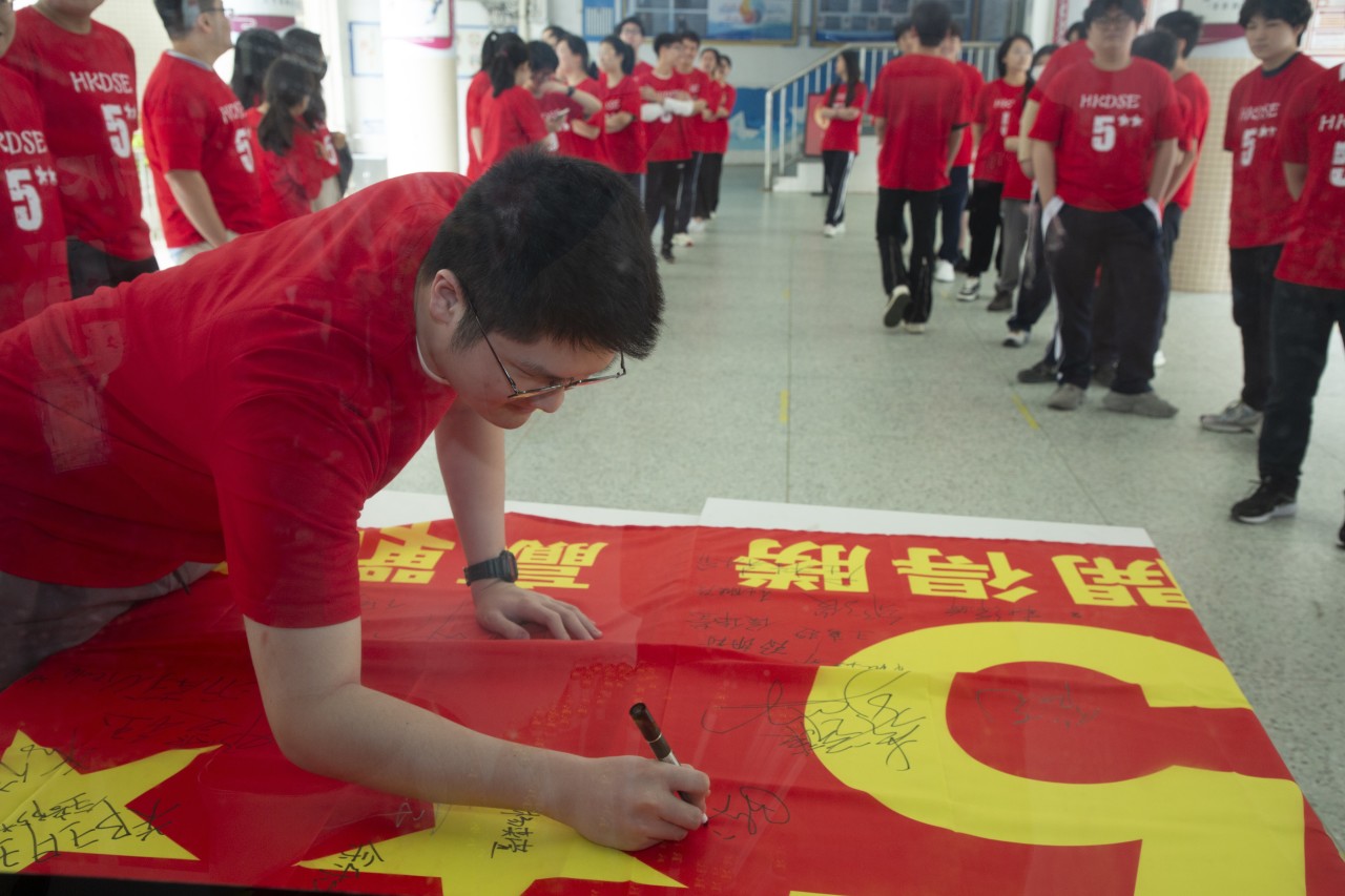 为了让学生们斗志昂扬参加考试,学校特于4月9日给中六班的学生举行了DSE考前动员大会。