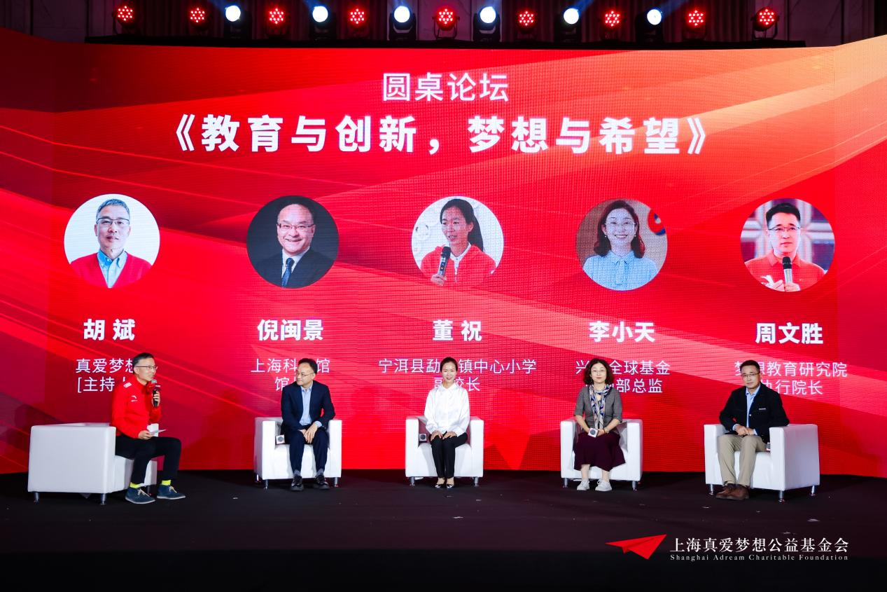 此外,在上海真爱梦想公益基金会理事长胡斌的主持下,上海科技馆馆长倪闽景、兴证全球基金市场部总监李小天、梦想教育研究院执行院长周文胜和云南省宁洱县勐先镇中心小学副校长董祝围绕“教育与创新,梦想与希望”的主题展开了精彩的圆桌对谈。