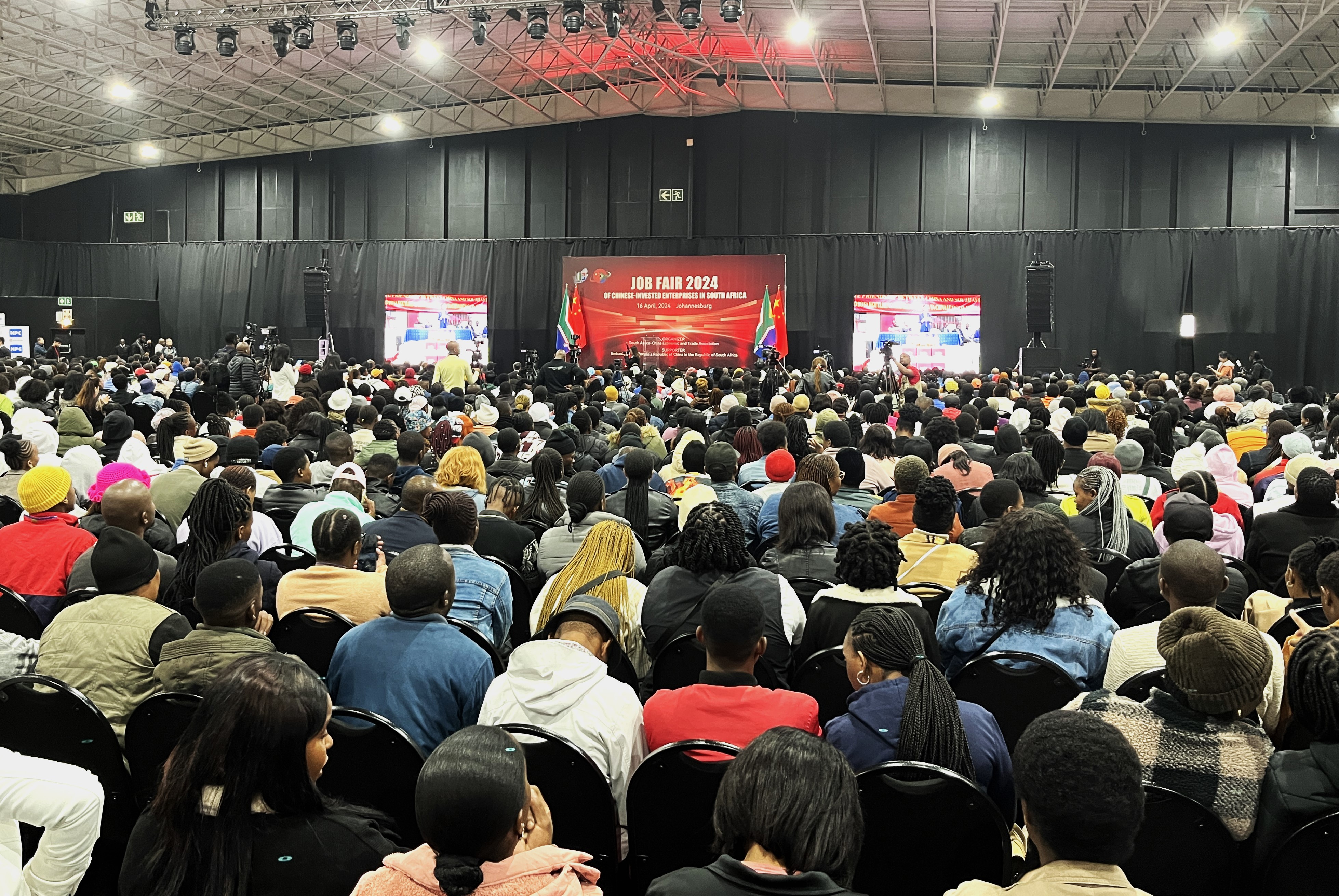 4月16日,数以千计的求职者涌进南非约翰内斯堡加拉格尔会展中心,参加2024年度中资企业招聘大会。60多家中资公司搭台参展、张开怀抱,招聘企业心仪的人才。