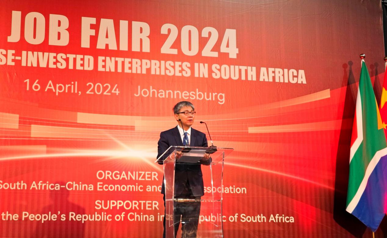 李志刚代办在致辞中表示,举办招聘大会是落实两国元首共识的重要举措。中方愿与南非携手共进,为南非解决就业、促进发展提供助力,让中南关系在“黄金时代”结出更多“黄金果实”。他说,中南经贸合作不断深入为当地经济社会发展作出了突出贡献。近十年来,中国对南累计直接投资130多亿美元,平均单个项目创造260个本地就业,居主要投资国首位。目前,200多家在南中资企业累计为当地提供了逾40万个就业岗位,甚至有的中资企业在南雇佣员工超过万人,年上缴税收达到4000万美元。在过去的3年里,中国从南非进口了超过1000亿美元的商品。对于南非的牛肉、柑橘、红酒以及其他产品,中国都是重要的出口市场。他还表示,中国和南非之间是兄弟友好合作关系。在南非最需要帮助的时候,中国紧急援助南非需要的电力设备以应对限电。