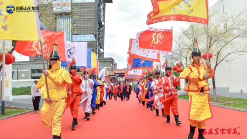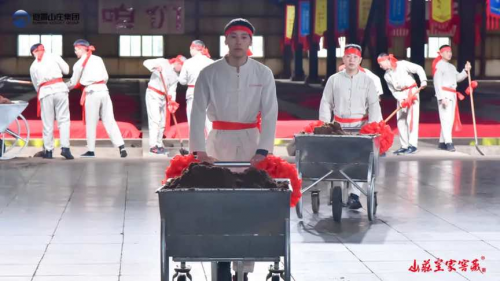 “一锹起,春回大地,美酒飘香;二锹起,壮哉山庄,传世佳酿;三锹起,头魁开窖,滴滴珍藏……”伴着酿造司仪的号声,山庄集团春酿正式开窖,500余名宾客在“八旗侍卫”的护卫下,共同见证了山庄新春头魁酒的诞生。