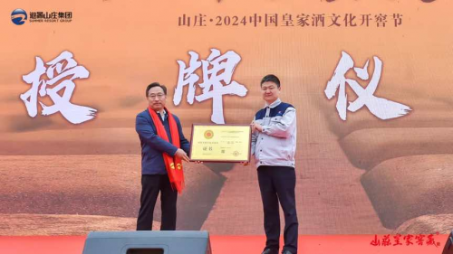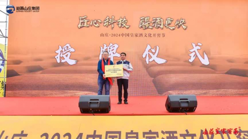 ▲山庄集团被授予“纯粮固态酿造示范基地”牌匾