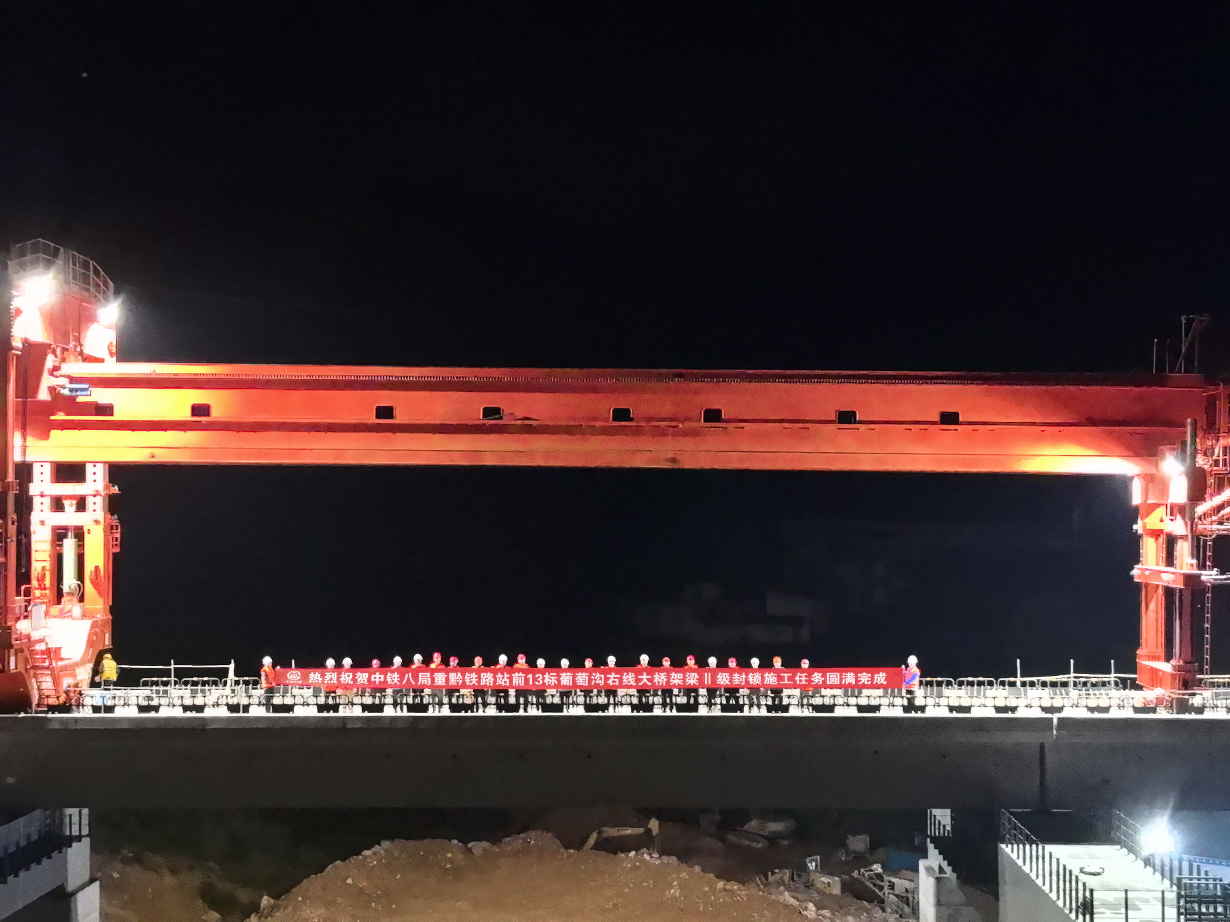 “本次封锁施工均为Ⅱ级天窗施工。”中铁八局重黔铁路项目铺架负责人罗江介绍,天窗点施工于4月15日晚上开始,4月20日凌晨结束,连续5个天窗点均在每日21:30至次日凌晨03:30,每天天窗点时间仅为6小时,具有施工难度大、时间紧、安全风险高等困难。要在天窗时间内完成架桥机过孔、箱梁架设、防抛网安装等施工任务。这不仅是对施工组织能力和管理水平的挑战,更是对施工人员精神和意志的考验。