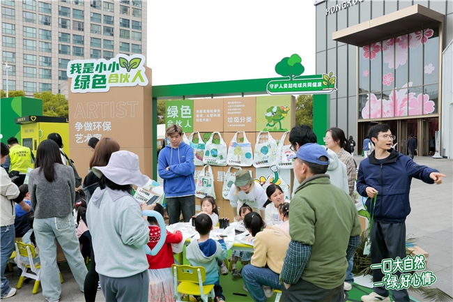 活动现场创新互动体验丰富好玩,人气火爆。一秒拍照认证成为第N位绿色合伙人,让参与者纷纷主动晒照;与地球装置互动,争当环保先锋实践者;在绘画区DIY,成为环保艺术家;在科普区,学习绿色环保知识并参与活动领取创意周边。一连串的创意互动,让大人小孩都享受其中,寓教于乐,玩得开心的同时,充满参与感,回收包装减塑、保护绿色地球理念得以潜移默化地向下一代传递。
