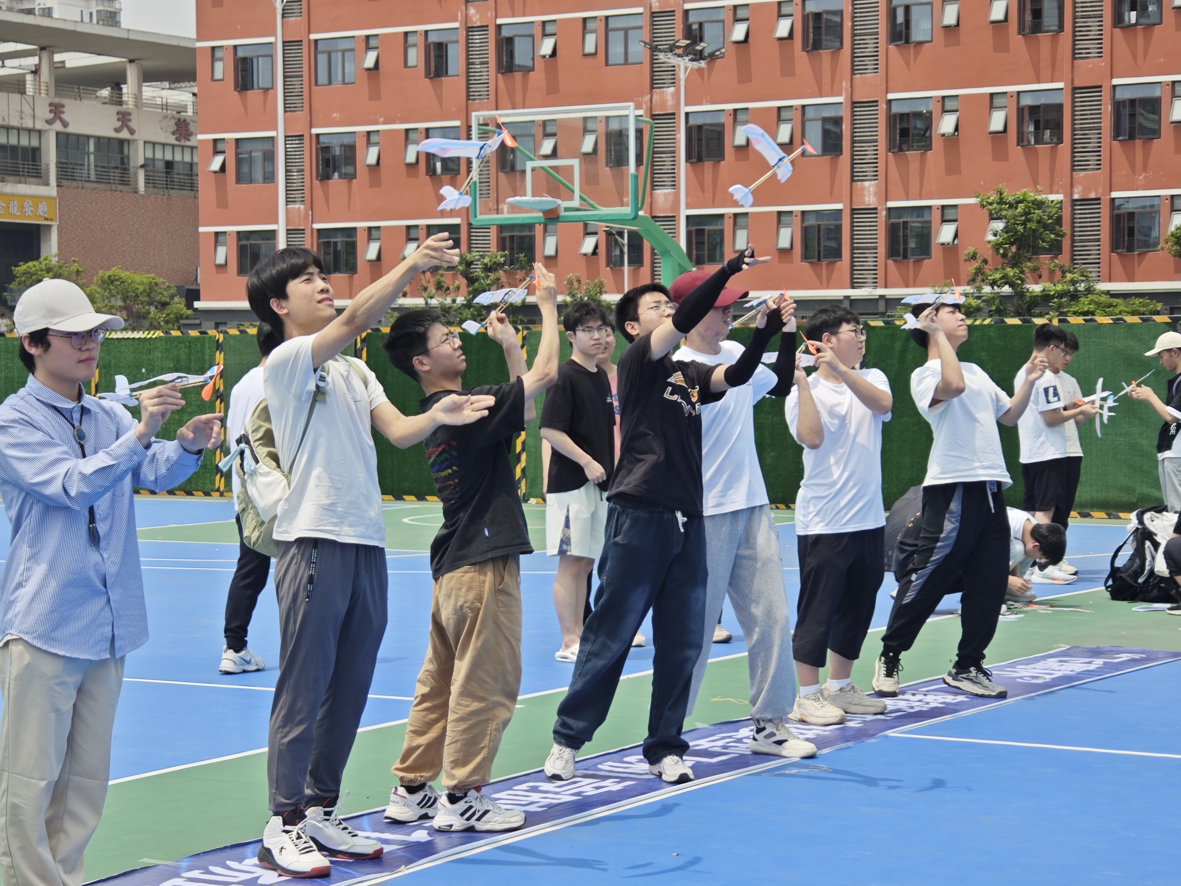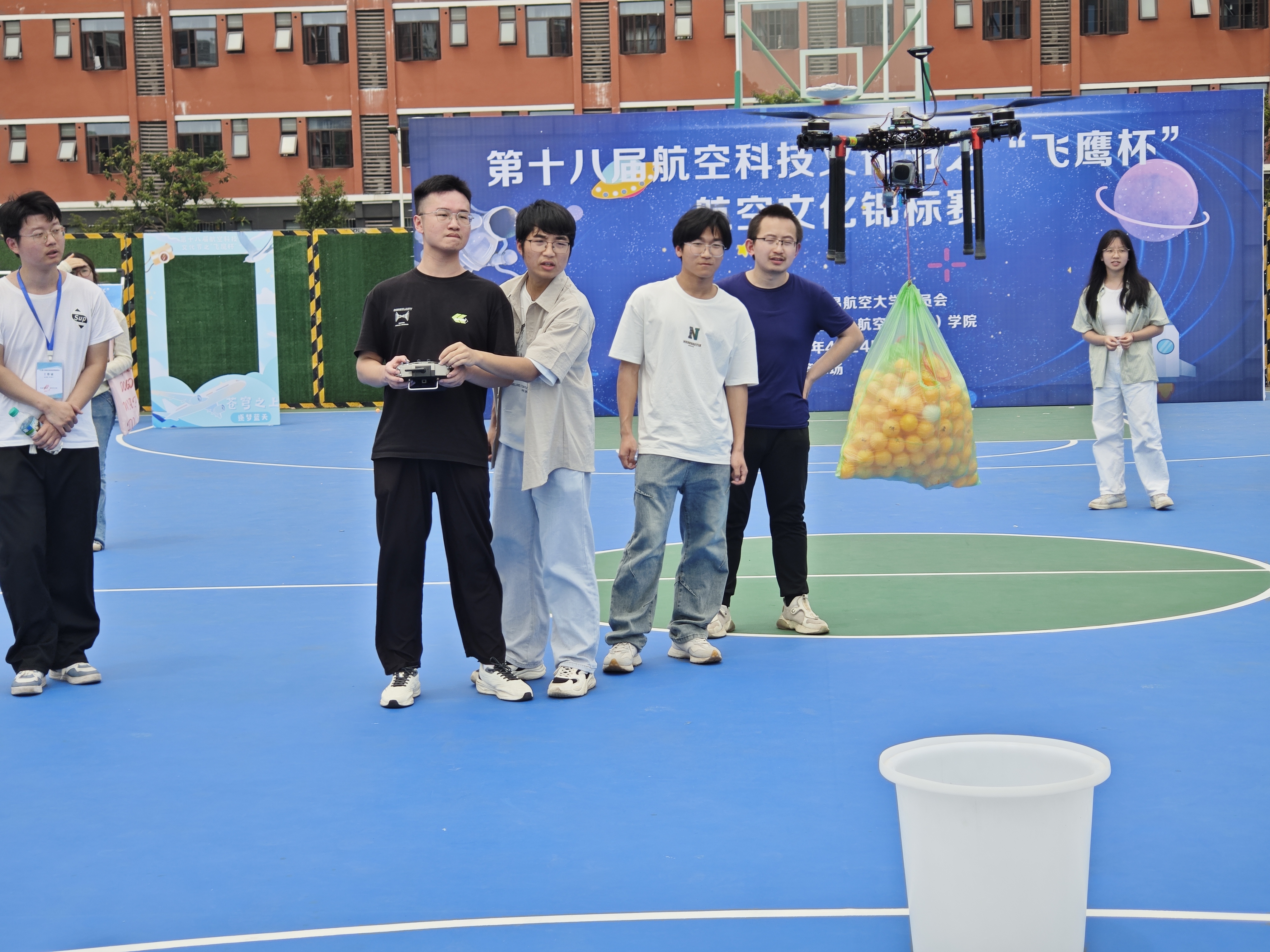 迎着朝阳,火箭广场上人潮涌动,集科技与娱乐于一体的“共襄星汉”科技嘉年华中“问天寻梦”航天知识答题竞赛、“宇航员训练微体验”“我的魔法星球”主题绘画活动等11项活动正在如火如荼进行中。篮球场上,垂直起降载运比赛、橡筋动力模型飞机竞时比赛、纸飞机投掷比赛吸引了无数同学的参与。大学生活动中心陈列着的“航空事业发展成就”主题图文展,更让同学们无比激动和自豪。