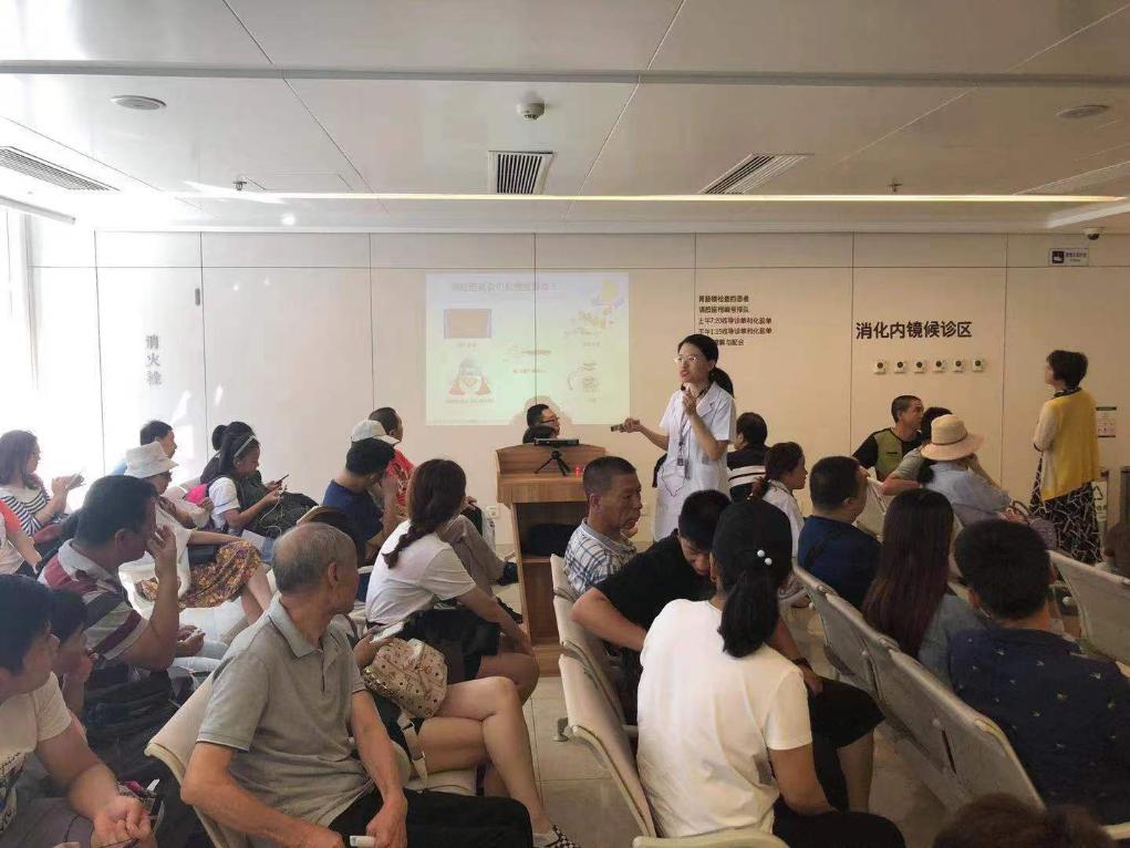 北京协和医院消化内科主治医师李佳宁为等候消化内镜的患者做科普宣讲。(受访者供图)