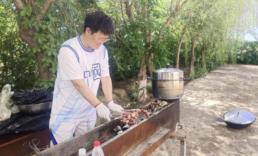 该院外科医生项扬在“厨艺大赛”活动中变身烧烤师傅,他表示,“让在本院工作的外省籍护士们品尝正宗的新疆烤肉串是件快乐的事,自己和同时们非常享受这烟火的快乐。”