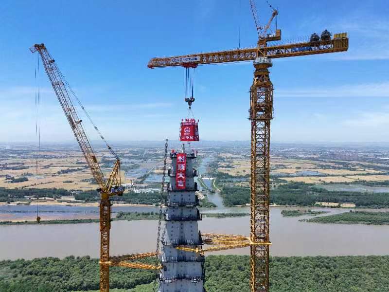 5月22日上午10时,随着第39节钢塔吊装对接到位,由中铁大桥院设计、中铁大桥局承建的巢马铁路马鞍山长江公铁大桥4号墩主塔封顶。至此,大桥三座主塔全部实现封顶,工程即将全面进入钢梁悬臂架设阶段。