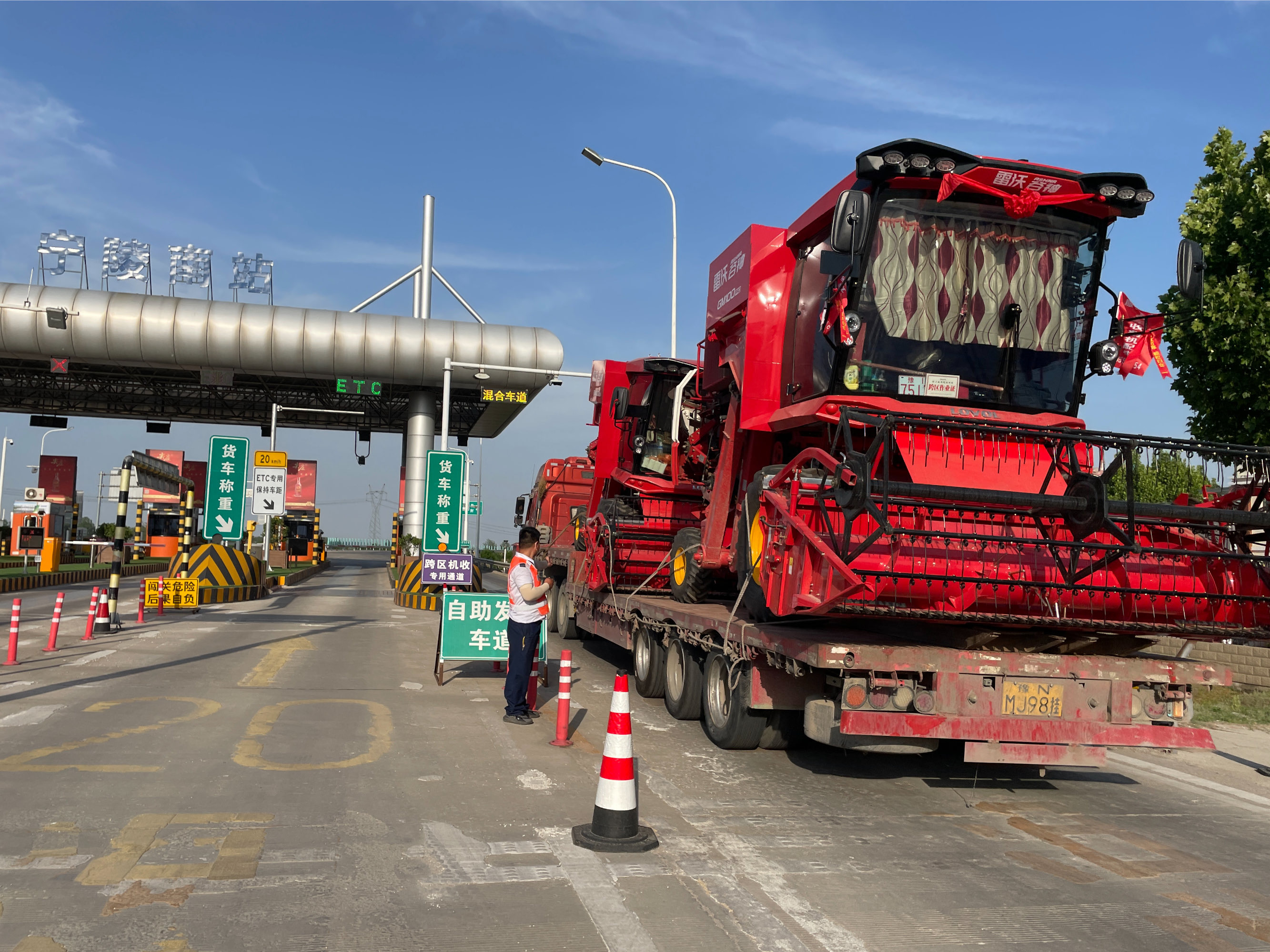 截至目前,河南全省高速公路收费站设置“专用通道”980条,累计服务联合收割机(插秧机)运输车辆2.5万辆。