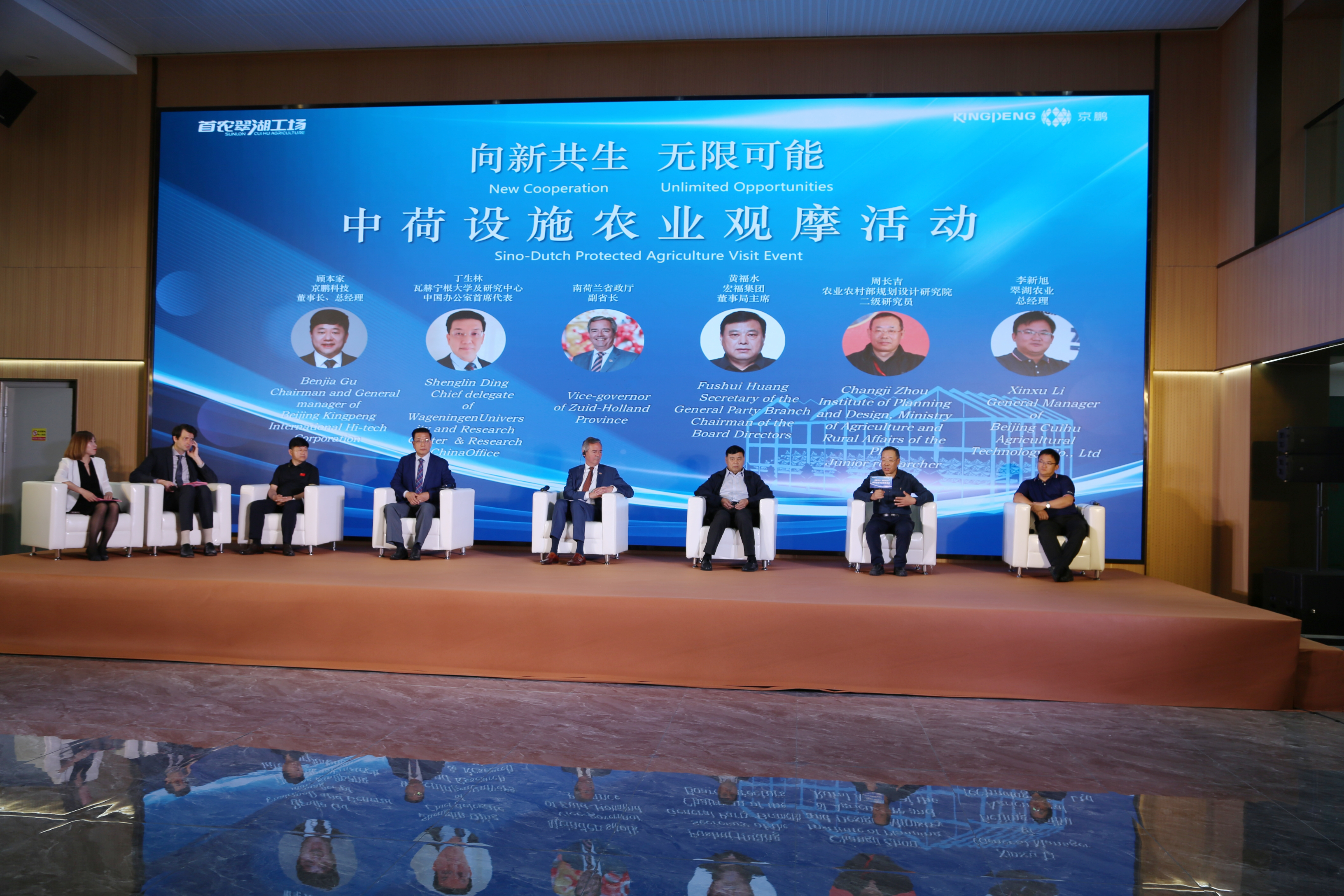 对话环节,荷兰瓦赫宁根大学中国办公室首席代表丁生林、迈因德特·斯托克、顾本家、宏福集团董事长黄福水、农业农村部规划设计研究院二级研究员周长吉、北京翠湖农业科技有限公司总经理李新旭分别就中荷设施农业发展现状、合作潜力、市场需求及发展方向等展开深入研讨。双方表示将携手推进设施农业技术创新与突破,共同构筑绿色、高效、可持续的现代农业未来。