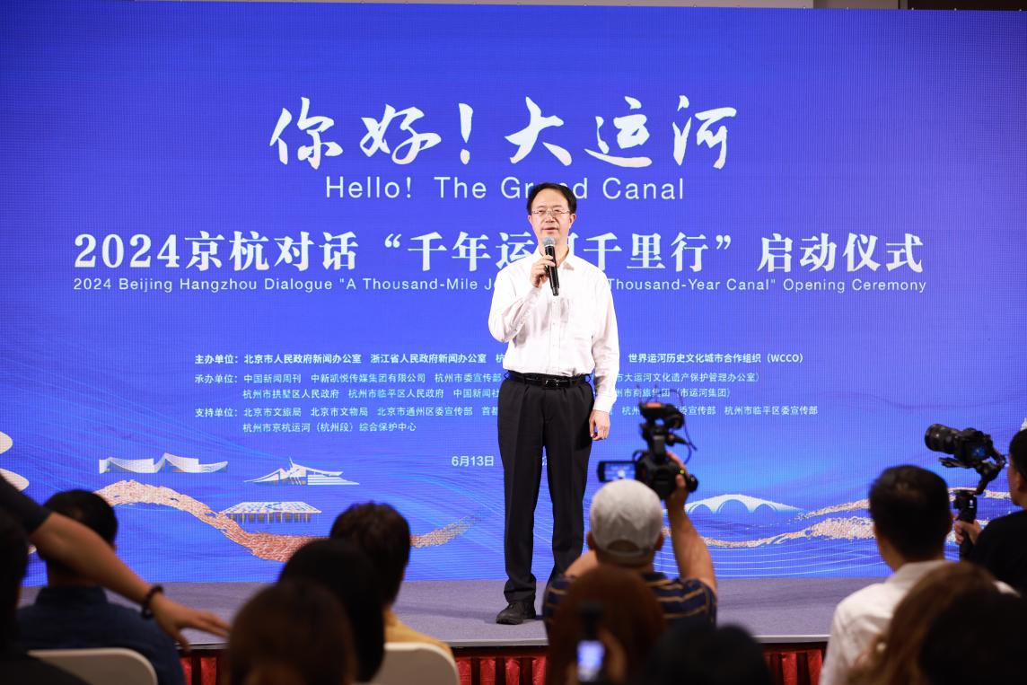 今年是大运河申遗成功10周年,6月13日,2024京杭对话“千年运河千里行”在北京市通州区启动。在北京市委宣传部副部长、北京市人民政府新闻办公室主任余俊生宣布该采风活动正式启动后,由“新马可·波罗”代表、北京“大运河体验官”以及中外媒体代表组成的采风团,从通州大光楼码头出发,将沿大运河南下,在北京、扬州、杭州等运河沿线城市展开采风交流。