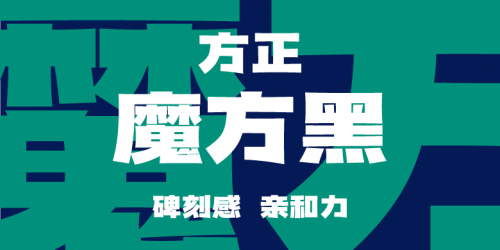 方正字库推出的方正魔方黑因造型酷似魔方而得名。设计师将拓片的碑刻感融入现代黑体,通过结构和笔形的设定使字体具有亲和力。极粗的字重搭配弯曲的线条,使得整个字形空间更加透气,赋予了字体活泼趣味的新生命。使用这款字体做设计,能够有效增强品牌的视觉趣味性。