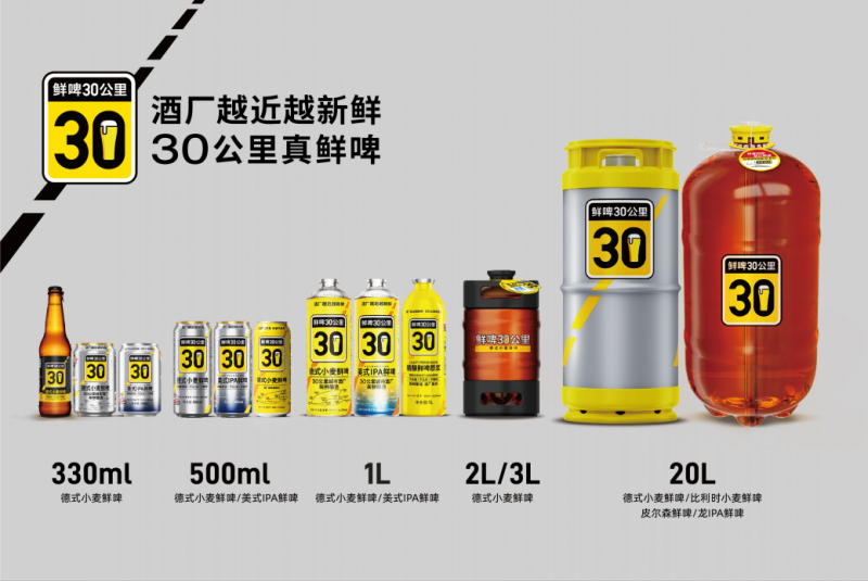 鲜啤30公里的鲜啤产品上市以来,在山姆会员店、麦德龙、大润发、新佳宜、永辉、喜士多、重庆百货、罗森、盒马、久光百货、Ole 、绿地G-Super 、Delilife 、 欧亚、三 江购物,海底捞、丰茂烤串、耶里夏丽、老街烧烤、文和友、不二君等商超、餐饮店销量攀升,广受顾客好评,已成为明星产品,复购率超高。