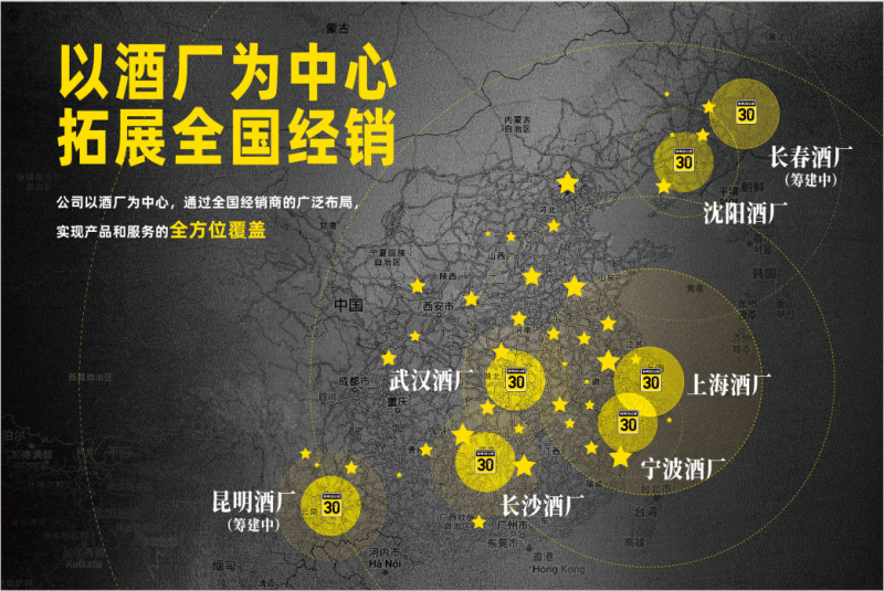 鲜啤30公里以酒厂为中心,拓展全国经销,通过全国经销商的广泛布局,实现产品和服务的全方位覆盖。