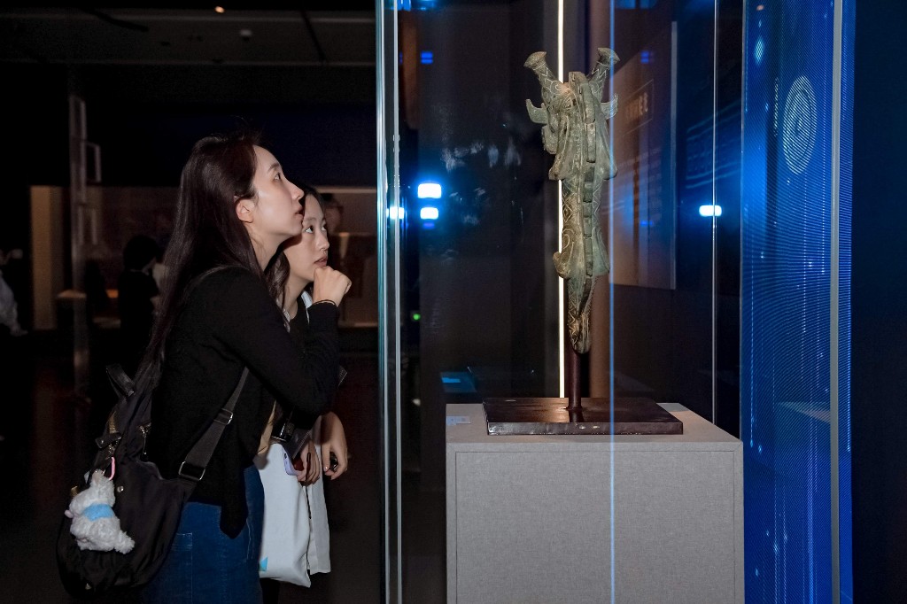 展览期间,展厅还将持续更新展品,观众将有机会看到数件“国宝级”珍贵文物,其中包括来自故宫博物院的清乾隆皇帝龙袍、宝鸡周原博物院的折觥、汉代麻纸、西周伯各卣、西周墙盘、汝窑天青釉洗等重磅文物。其中最值得关注的是,国宝级文物西汉长信宫灯预计将在8月进入展厅。“这是一件家喻户晓的文物,其设计十分巧妙,宫女挡风的手袖实为隐形虹管,用以吸收油烟,既防止了空气污染,又极具审美价值,是早期环保理念的最佳体现,被称为中华第一灯。”奉贤博物馆馆长张雪松说。