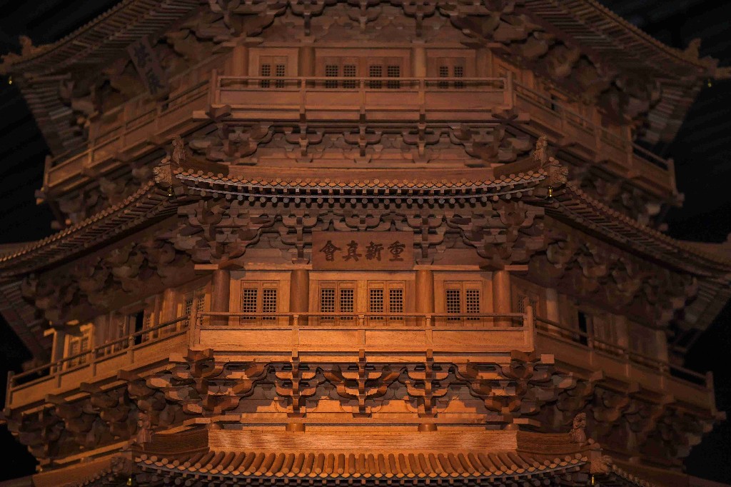 应县木塔的等比例木结构模型。