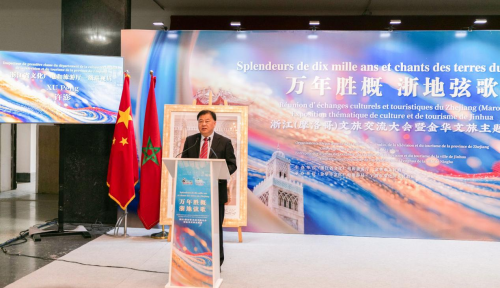 许澎在致辞中表示,浙江是一个人文荟萃的旅游大省,山海雄阔,风光隽美。通过海上丝绸之路的联结,浙江与摩洛哥早早建立起了深厚的文化与经贸交流关系。并介绍了以金华为代表的浙江人文旅游魅力,希望此次活动能为推动双方文旅产业注入新的活力。