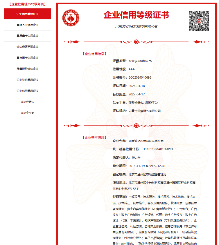 并且企业信用评价AAA级信用企业等认证荣誉的加持,既是行业对波动积木专业能力与品牌影响力的认可,也成为波动积木前行道路上无形的鞭策。未来,波动积木将持续贯彻教研优势,为终身学习者提供多领域知识课程,帮助用户摆脱知识半衰期,不断升级个人认知,成为知识型社会的“主人翁”。(广告)