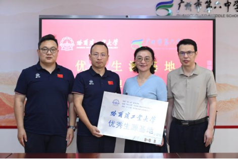 6月26上午,哈尔滨工业大学(深圳)经济管理学院副院长冯泓,计算机学院副教授户保田、环境学院博士王威(六中校友),广州六中校长温晖、副校长江玉军等共同出席了“优秀生源基地”授牌仪式。
