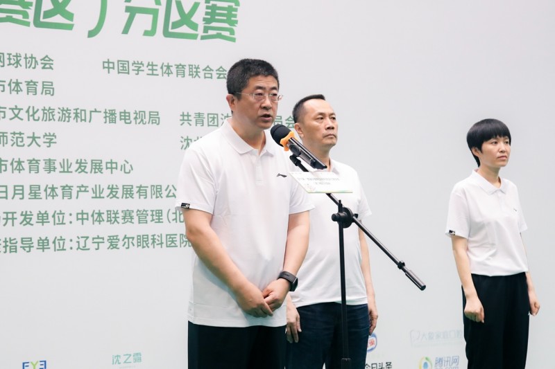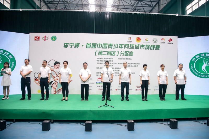 上午9时整,李宁杯·首届中国青少年网球城市挑战赛(第二赛区)分区赛正式拉开序幕,国家体育总局网球运动管理中心副主任、中国网球协会副主席万建斌,中体产业集团副董事长、总裁陈世虎,沈阳市体育局党组书记、局长宋丽等领导亲临比赛现场并出席开幕式。