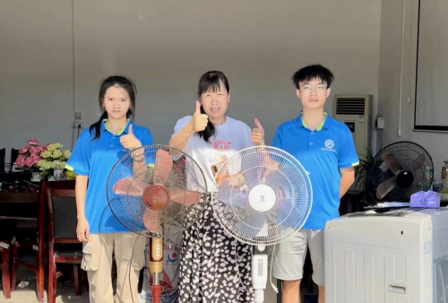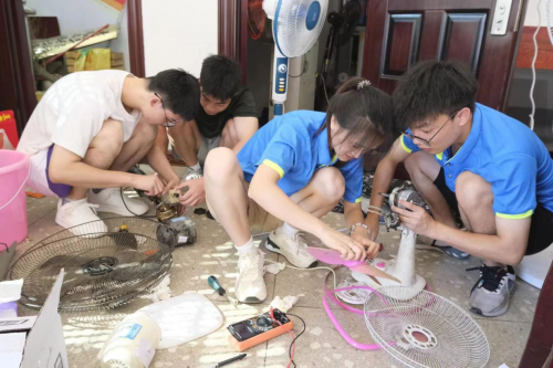 “没事,听说村里来了群大学生,会修小家电!”拿上坏了的电风扇,曾阿姨向村委会走去,老远便瞧见村民们排着队送自家坏了的小电器,也有村民笑眯眯地取走已修好的电器。