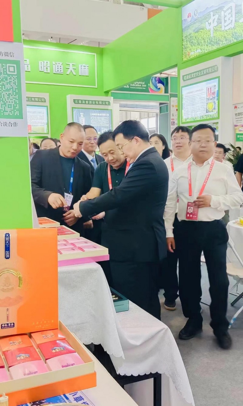 南南博会开幕后,云南省副省长郭大进等一行领导来到昭通展区巡馆,视察小草坝集团等昭通企业的展位,了解昭通天麻系列产品,并询问昭通天麻的种植、加工全产业链发展的新动向。郭大进在现场提出,加强对天麻的科研工作,在天麻产品深精加工上“下大功夫”“做文章”提升天麻生物价值和产品附加值,擦亮昭通天麻这张“老名片”。
