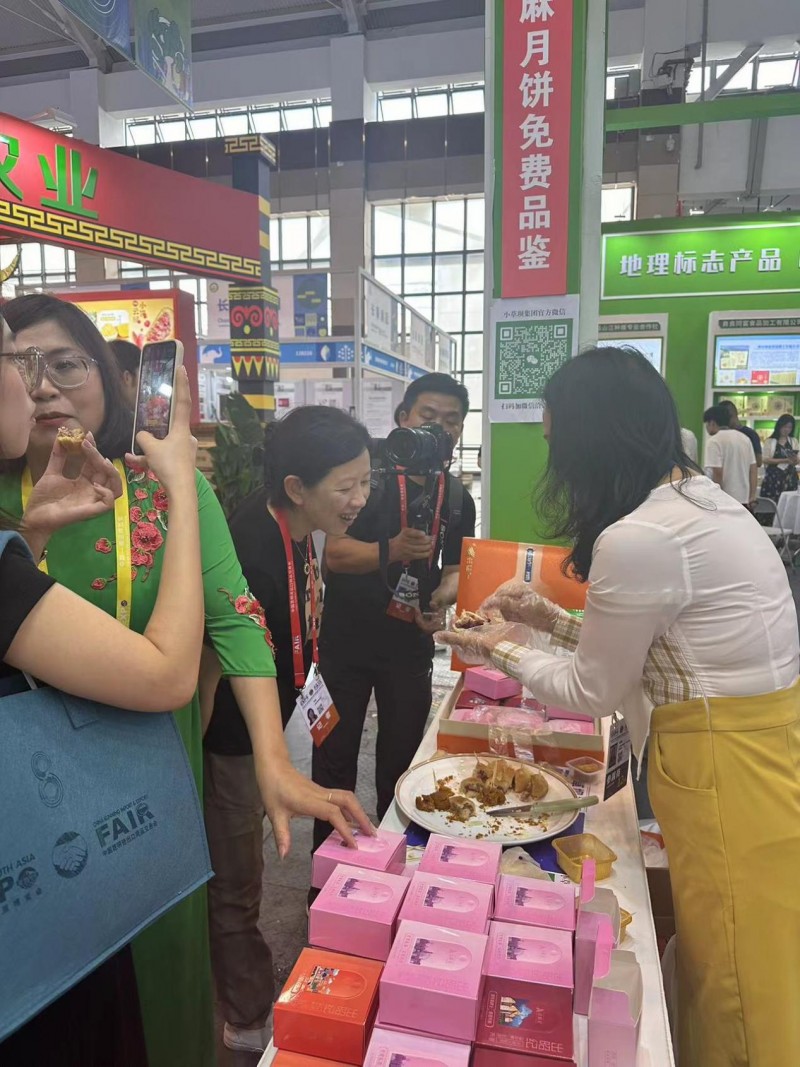 小草坝集团携天麻养生系列产品——出昭纪·天麻原浆酒、天麻压片糖果、天麻原浆饮品、天麻月饼等多款天麻系列产品及小草坝精品新鲜天麻亮相此次南博会,借南博会东风,拓展市场,提高品牌知名度,为海内外来宾带来独特的健康体验和分享。展会现场,海内外客商和来宾络绎不绝地驻足小草坝集团展位,咨询交流、品尝体验。