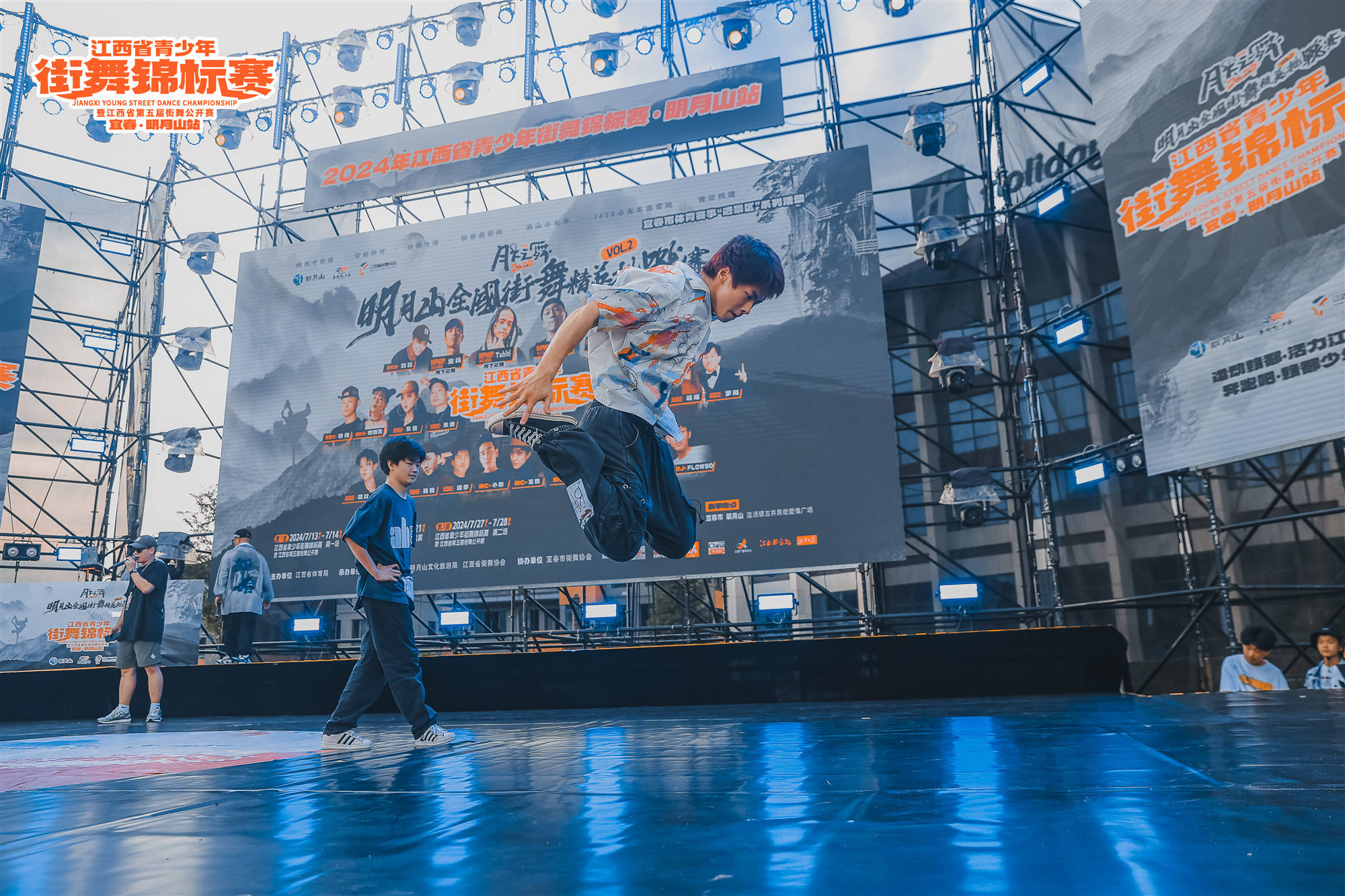 明月山,以其“奇峰险壑、温泉飞瀑、珍稀动植物和禅宗文化”而闻名遐迩。在这样一个自然与人文交相辉映的背景下,自7月13日赛事拉开序幕以来,每周六和周日晚,明月山温汤小镇的夜空便被街舞的激情所照亮。7月27日,巴黎奥运会开幕式在塞纳河畔隆重举办,为奥运喝彩,为中国加油。同日,江西省青少年街舞锦标赛明月山也火热开赛。来自全国各地的顶尖街舞高手齐聚一堂,以舞会友,用汗水与才华诠释了街舞的无限魅力。从HIP-HOP的自由不羁到BREAKING的震撼人心,各种风格的舞蹈轮番上阵,为观众带来了一场场精彩绝伦的视听盛宴。在明月山,街舞不仅仅是身体的律动,更是与山水对话、与天地共鸣的艺术表达。