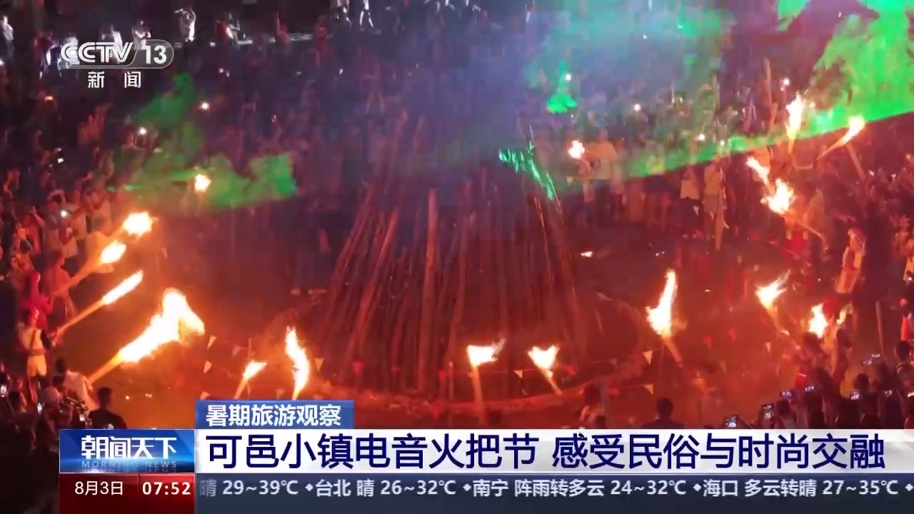 我们把镜头转到位于弥勒的可邑小镇,这里正举行着第二届电音火把节,活动邀请众多知名乐队进行表演,给市民游客带来了一场既有民族特色又有时尚潮流的狂欢盛宴。当晚,“点火把”仪式将活动推向高潮,游客纷纷围着熊熊篝火快乐起舞。