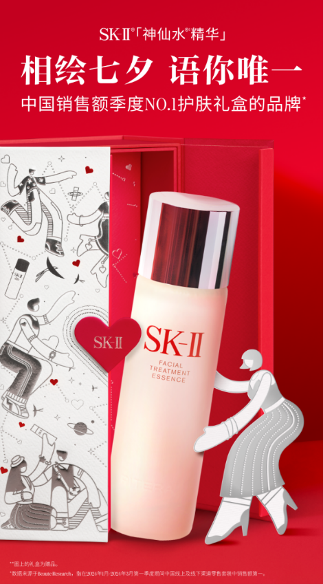 【2024年8月】爱是细腻而深邃的画作,每一笔精心描绘的色彩都是雀跃着爱意的密码。七夕将至,全球高端护肤品牌SK-II携手国际时尚插画师,新巧呈现SK-II七夕全新限定礼盒,让独属的爱意在每个色彩笔触中无尽流淌。“相绘七夕,语你唯一”,与SK-II共同触动从肌肤到心灵的真爱之语。作为连续霸榜京东送礼季NO.1精华*,SK-II这次七夕又带来了什么惊喜?
