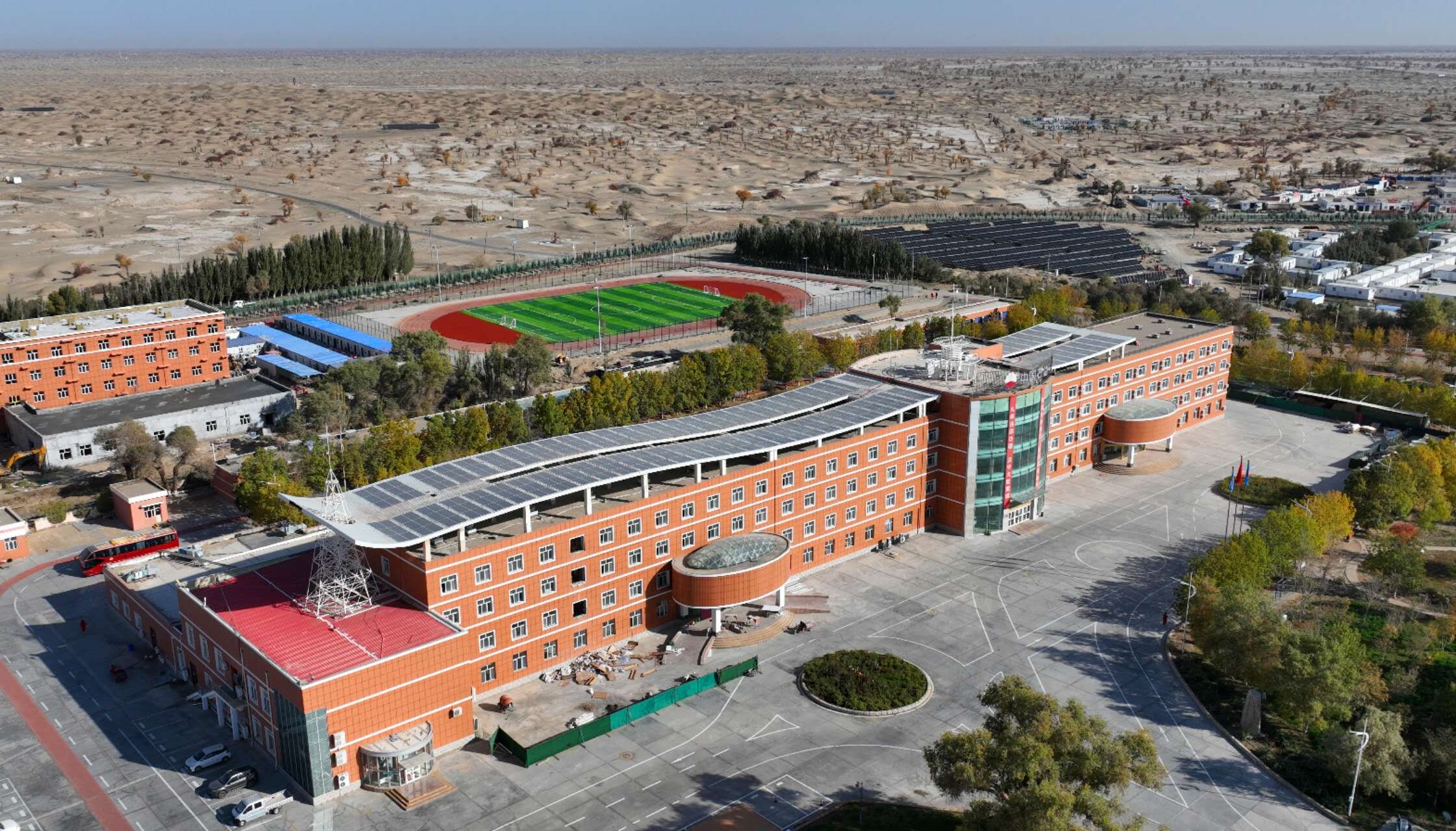 哈得采油气管理区公寓楼顶铺设光伏发电板,实现绿色低碳生产生活。陈士兵 摄