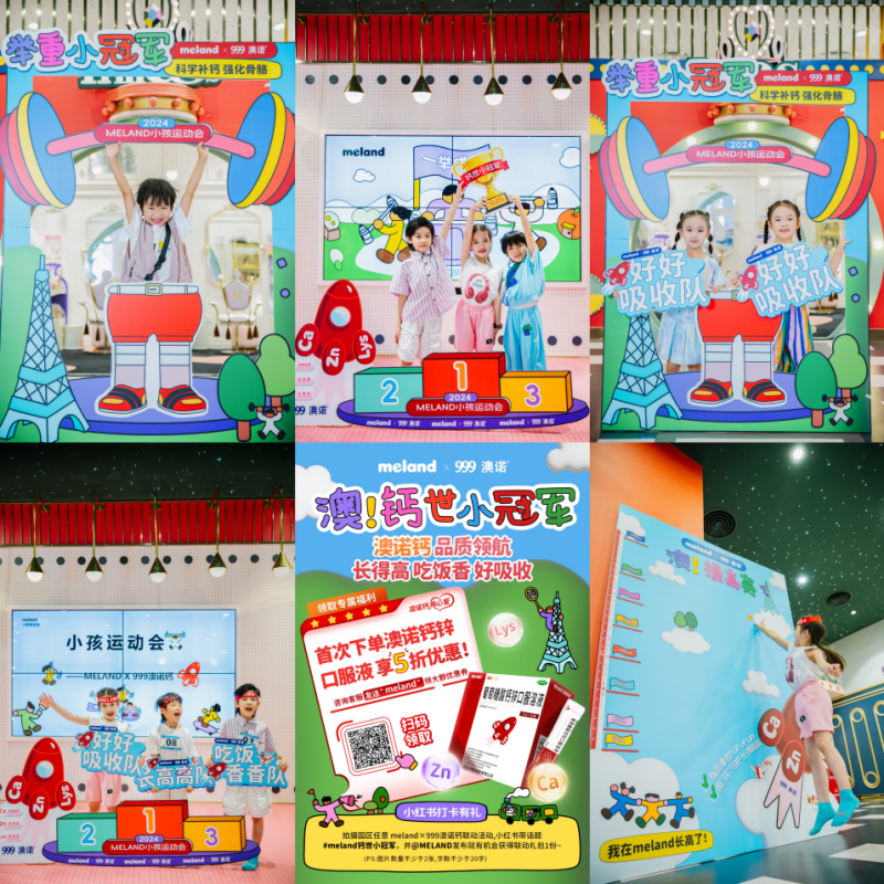 此次营销动作中,999澳诺的线下场景也相当热烈。当全球运动健儿逐梦巴黎时,小孩们的运动会也欢乐开幕了。999澳诺联合MELAND共同为“钙世小冠军”们开展小孩们的主题趣味运动会。让大家不止能在屏幕面前欢呼,也能在夏日的暑期实地地感受到运动带来的乐趣,真正为新一代父母和孩子们提供新趣味运动场所,同时,更进一步加强对消费者对于999澳诺的品牌认知,传递999澳诺对每个小小孩的关爱与成长。