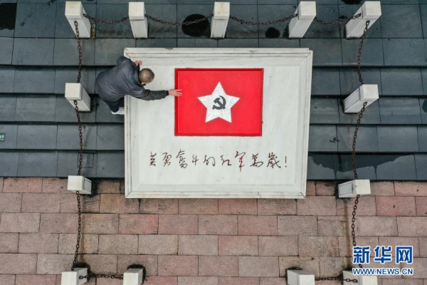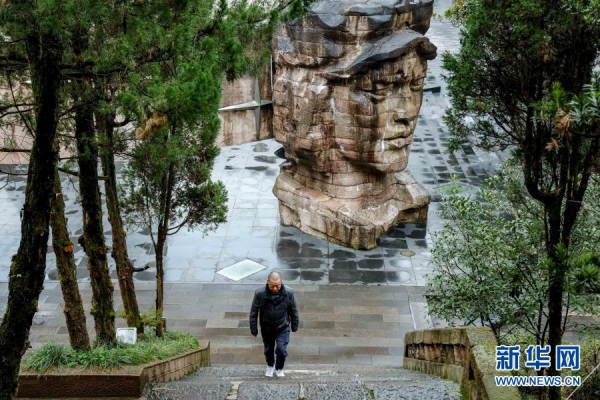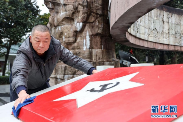1月25日,杨爱民在遵义红军烈士陵园内巡查。
